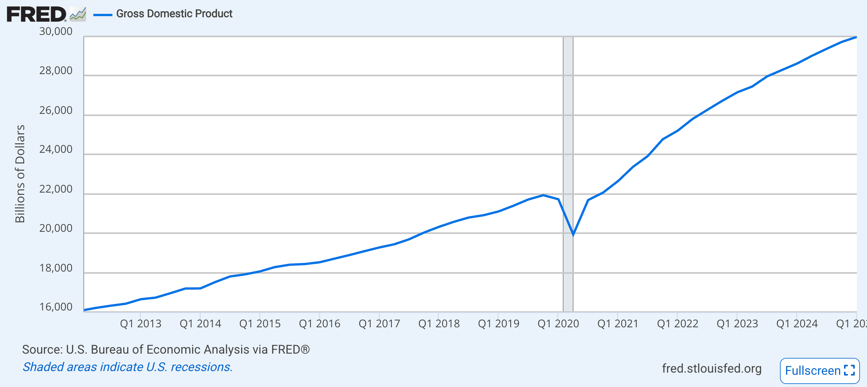 How about the collapse of our economy? See if you can spot the collapse of our economy in the Fed’s chart of gross domestic product:
