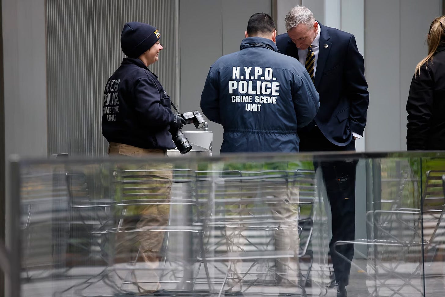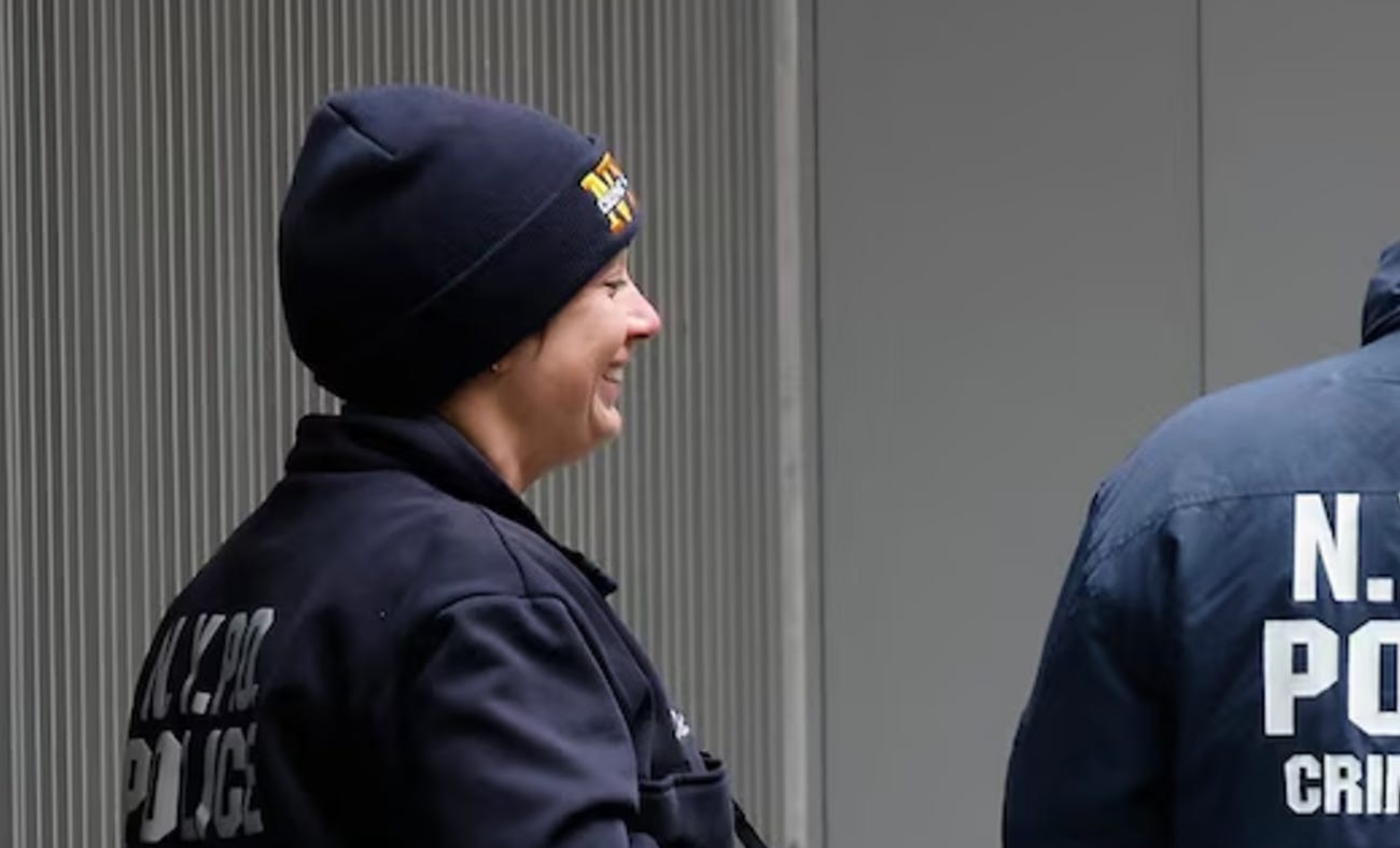 FWIW It may not be just the hippies and anarchists doing the happy dance over Thompson’s murder. Zoom in on this picture of police at the crime scene: