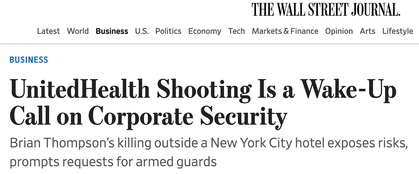 “[M]any boards and CEOs across the U.S. today are asking their chief security officers for reviews of the current state of their executive-protection programs,” security consultant Dave Komendat told the Wall Street Journal.