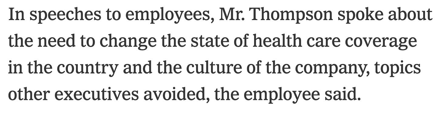 STAT News, which covers the healthcare industry, reported that UnitedHealthcare CEO Brian Thompson was a passionate, outspoken advocate of not changing jack shit.