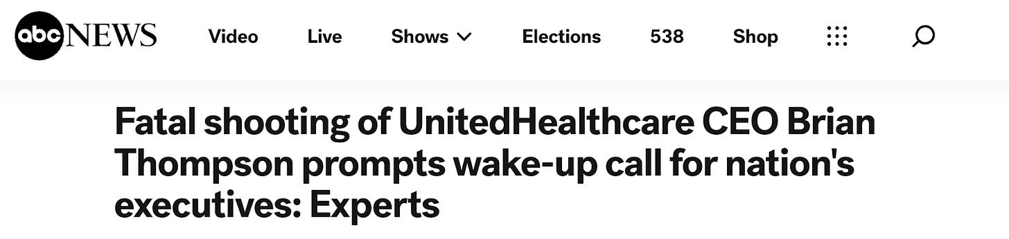 Even if their health-care plans don’t cover vision, the nation’s insurance executives have seen the mass rejoicing in the murder of UnitedHealthcare CEO Brian Thompson. They’ve read all your social-media posts about murder-by-spreadsheet and horror stories of people who literally died because a UnitedHealthcare algorithm decided it was your time.