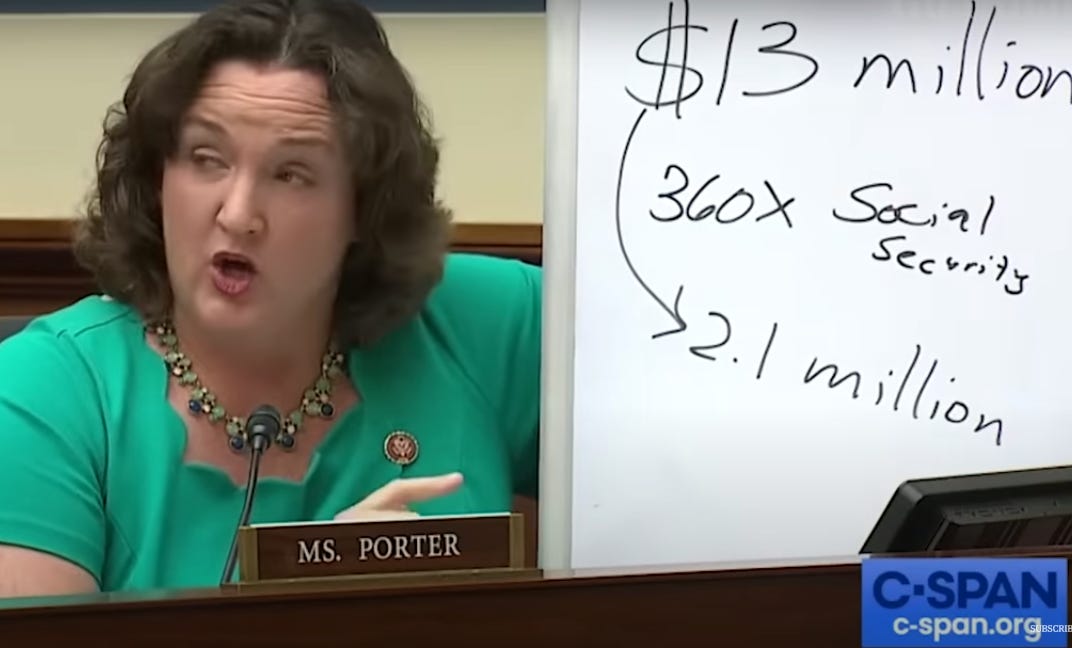 And then there was that moment that may have saved, I dunno, let’s say hundreds of thousands of people? During five minutes of questioning, Porter got Trump’s Centers for Disease Control and Prevention Director Dr. Robert Redfield to pledge he would use his legal authorities to make COVID tests available for free, for everyone, in March of 2020.
