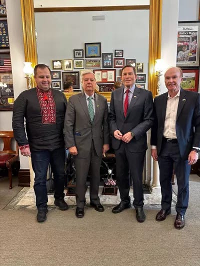 After all, as I reported, Unguryan met with Johnson back in January. And here, from left to right, is Unguryan last month with Sens. Lindsey Graham (R-SC) and Blumenthal, and GOP operative Karl Ahlgren.