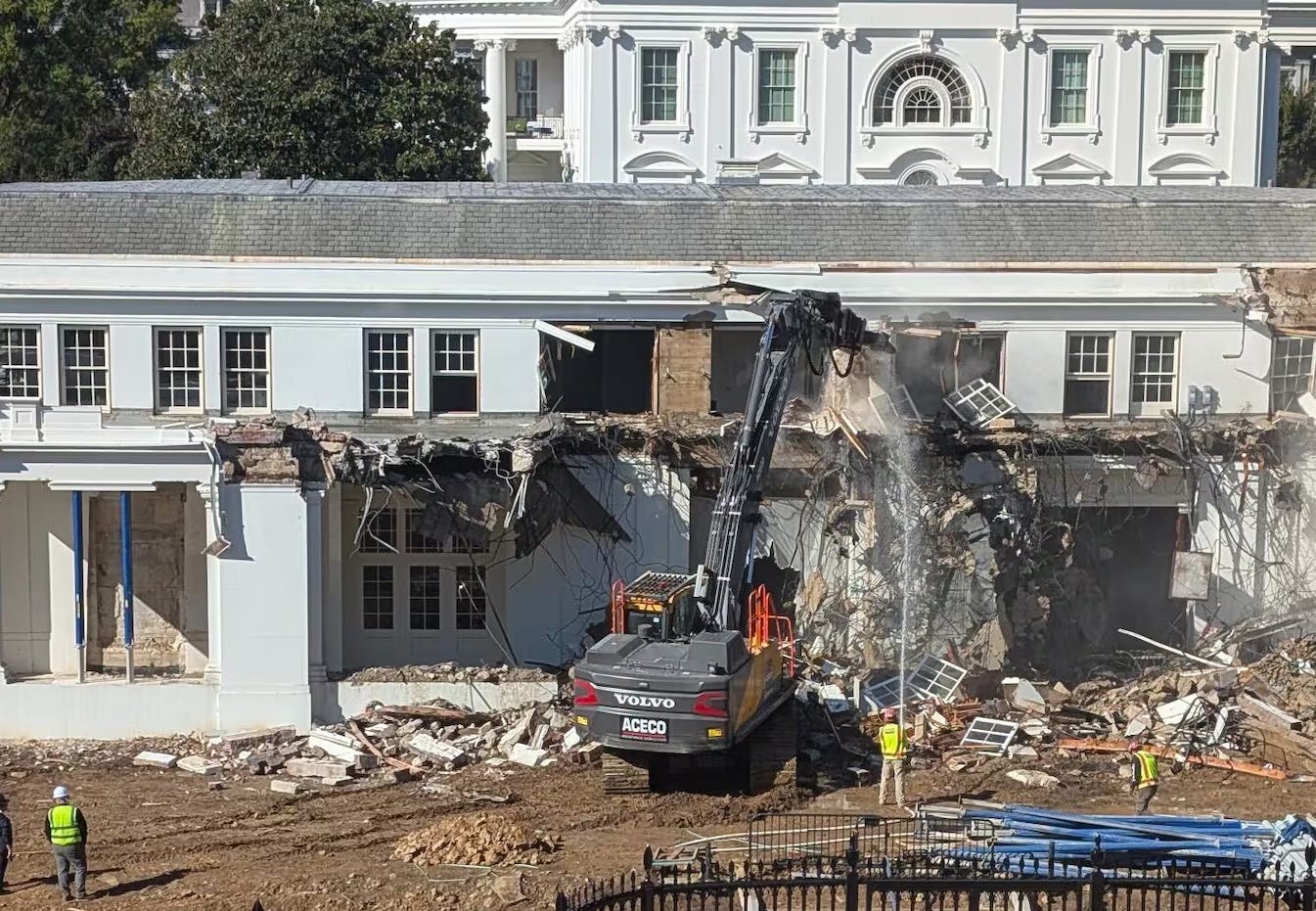 Trump's accomplices successfully destroyed the East Wing facade in the worst attack on the White House since the British burned it down