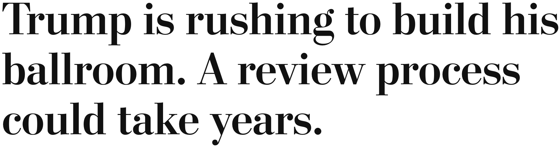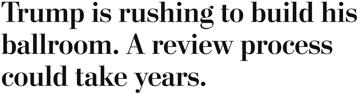 "Trump [sic] is rushing to build his ballroom. A review process could take years."
