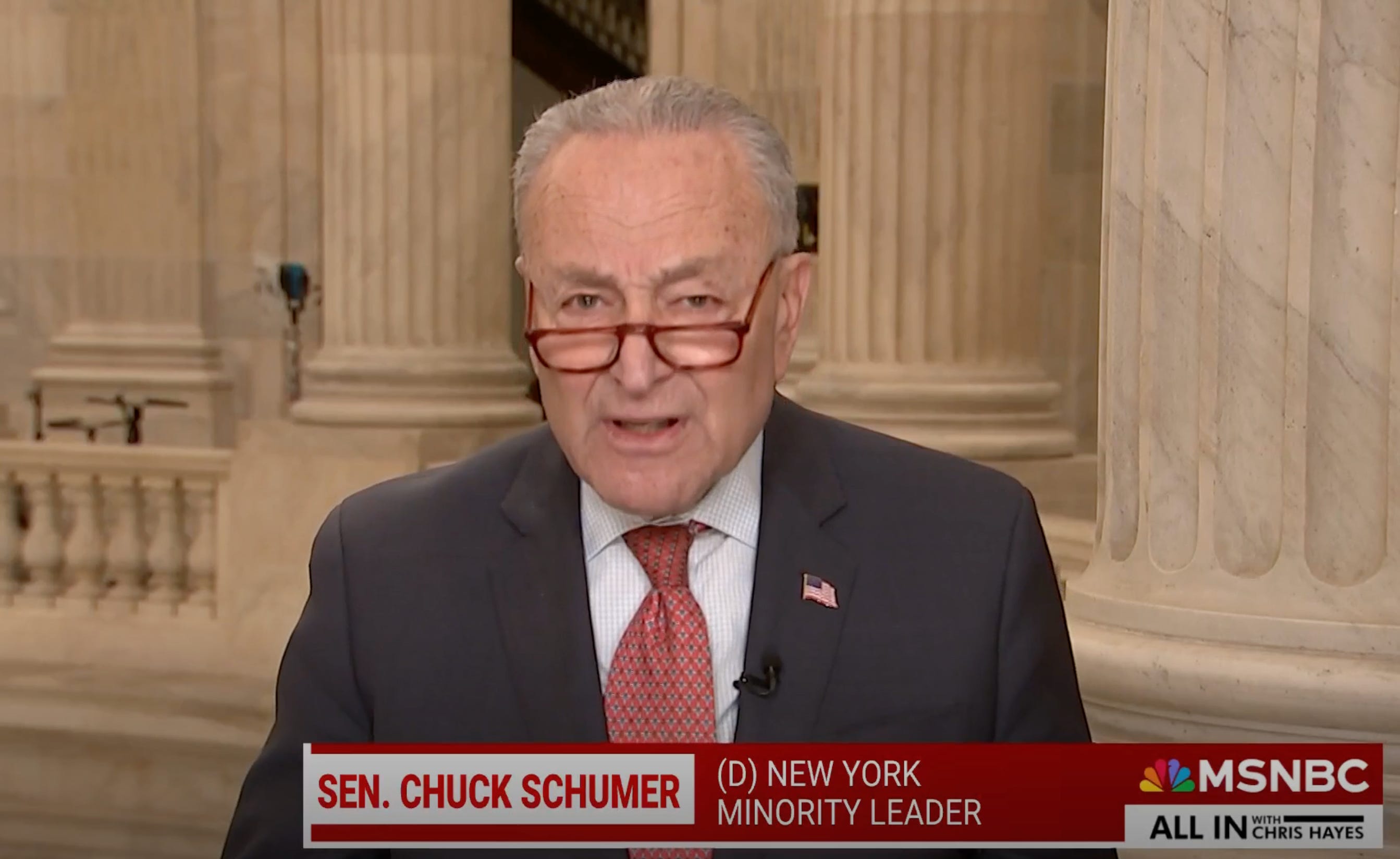 On Friday, House Democratic Leader Hakeem Jeffries (D-NY) declined to get Schumer’s back, possibly due to the stab wounds in his own.