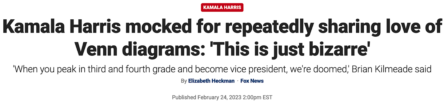 In fact, the economy was so good last year, and the border so secure, that Fox could dedicate an entire produced segment, with banners and soundbites, to ridiculing Harris’s fondness for the explanatory power of overlapping circles: