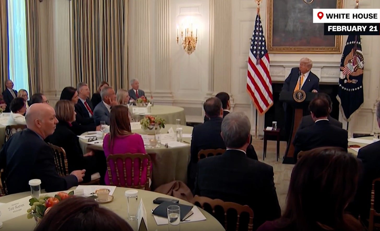 You may recall that at a White House event for governors, Trump asked whether Maine would comply with his new dick edict ordering schools not to let transgender girls participate in girls’ sports. Mills responded that Maine would follow the law, which Trump then claimed was he. Or “we,” actually.