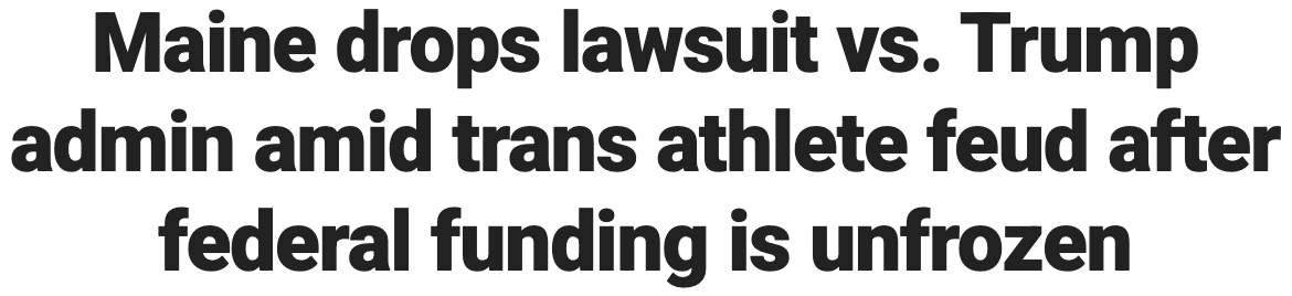 The article itself also worked its ass off to mask Trump’s total defeat: “In exchange for the U.S. Department of Agriculture agreeing to restore federal funds to Maine that it had frozen, the state dropped its lawsuit against the Trump administration over that issue.”