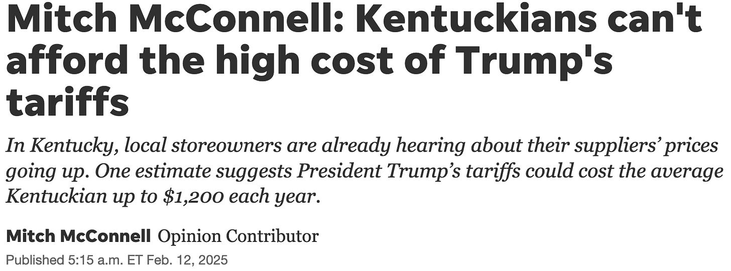 Sen. Mitch McConnell (R-KY) was the Republican leader until the very last days of the Biden presidency. Here’s what he had to say in an op-ed piece that he wrote for his Kentucky voters back home today: