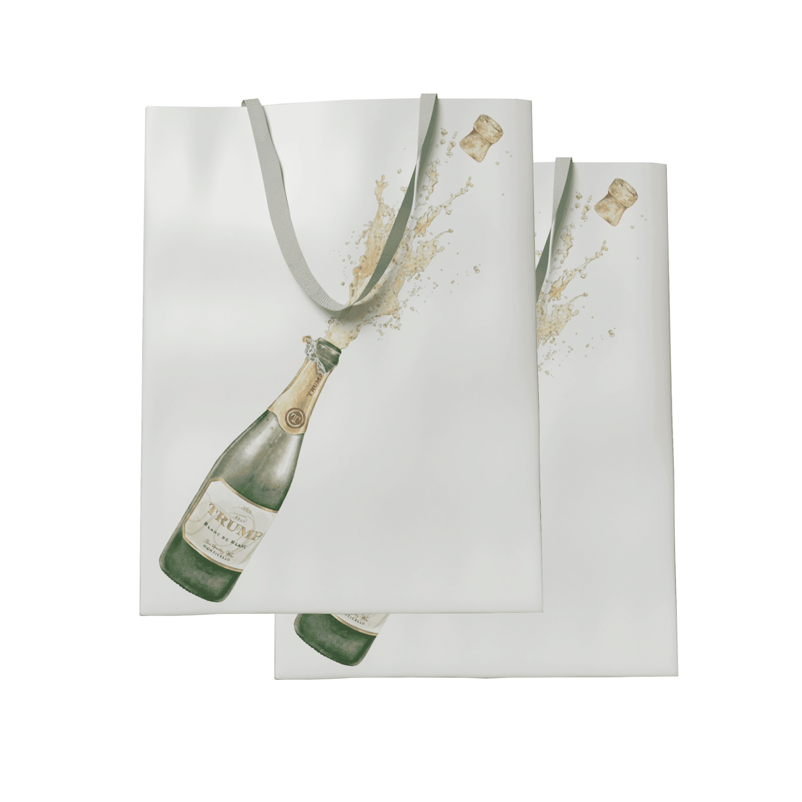 In a filing yesterday, the two revealed that they sold off all but 100 shares out of the 7.53 million they previously had. It’s not clear whether or how much the former Apprentice apprentices paid for the shares, but as the AP notes, anyone who paid $79.38 at its peak is now the proud owner of shares valued at $13.98, or just enough to cover the cost of a set of two (2) handsome champagne gift bags featuring a bottle of Trump’s failed somehow still-existing champagne.